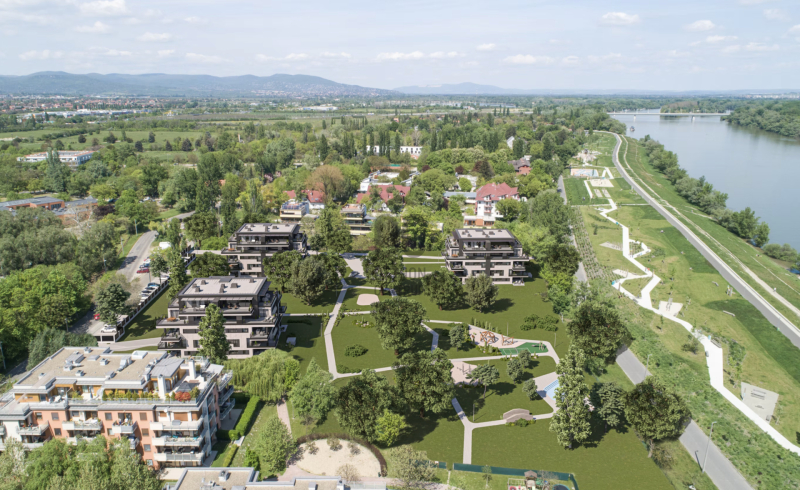 A környék egyedülálló hangulatát a Duna-parti sétány, éttermek, kávézók és hangulatos teraszok adják, miközben a természet közelsége valódi nyugalmat biztosít.