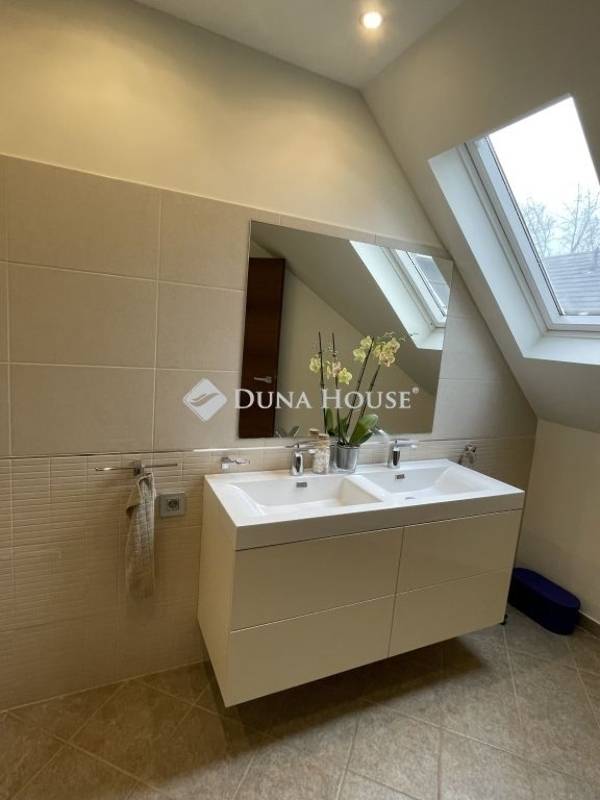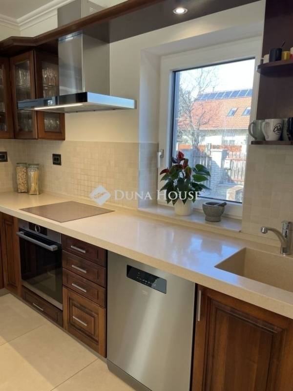 Eladó Velencén egy ízlésesen kivitelezett családi ház kellemes, kertvárosi környezetben. Az ingatlan tégla építésű, 15 cm vastag grafitos hőszigeteléssel, hőszigetelt nyílászárókkal, gázcirkó fűtéssel, klímával, 9,5 kW-os napelem rendszerrel, elektromos kapuval. A kert kényelmes méretű, öntözőrendszerrel. A környezet nyugalmas, kellő közelségben iskola, óvoda, vasútállomás és orvosi rendelő.