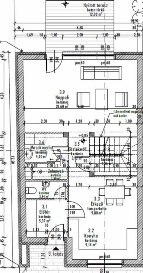 Alapterület: 135 nm-es, két szintes, átgondolt tervezésű élettér.