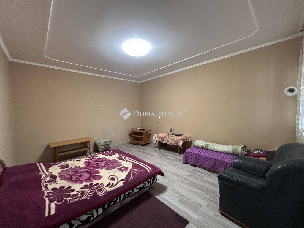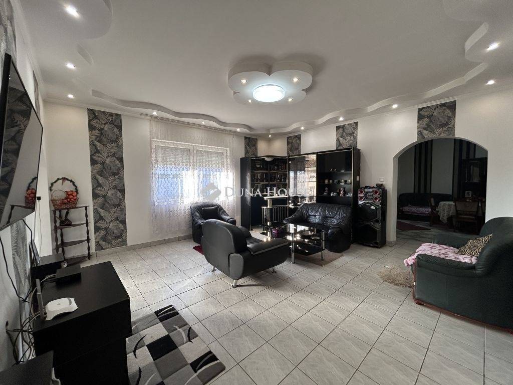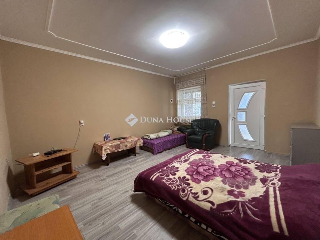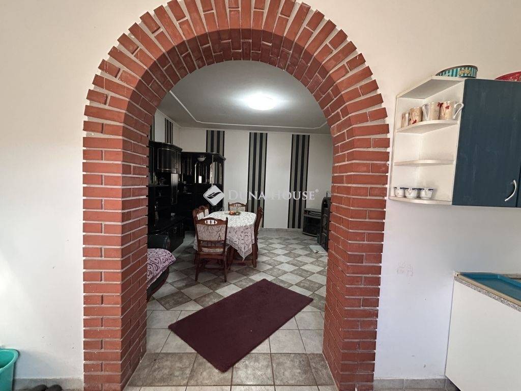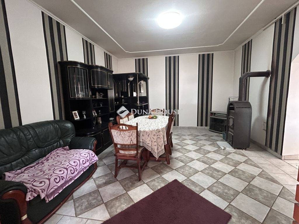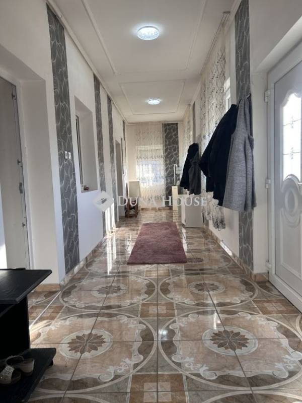 Eladó lakóövezeti környezetben, kiváló elhelyezkedéssel egy nagy alapterületű családi ház, hatalmas telekkel.A település egyik jól megközelíthető, mégis nyugodt részén, 3462 m²-es telken kínáljuk megvételre ezt a közel 200 m²-es, betonalapra épült családi házat, amely méretének és elrendezésének köszönhetően ideális választás lehet nagycsaládosok, többgenerációs együttélésben gondolkodók vagy akár vállalkozásban is gondolkodó vevők számára.Az épület falazata vegyes, de döntően tégla, a belső terek pedig jól átgondoltan, élhető módon kapcsolódnak egymáshoz. A házban két hálószoba, egy tágas nappali, étkező, konyha, fürdőszoba, külön WC, előszoba és közlekedő kapott helyet. A lakótérhez nyárikonyha és kamra is kapcsolódik, valamint egy 28 m²-es pince, amely kiválóan alkalmas tárolásra vagy akár hobbicélokra is.A házhoz hozzáépítésre került egy külön bejárattal rendelkező rész, amelyben WC helyiség, vízkiállásokkal ellátott, szabadon hasznosítható helyiség, valamint külső tároló található. Ez a rész számos lehetőséget rejt magában: alkalmas lehet műhelynek, vállalkozásnak, vendégrésznek vagy akár egy leválasztható lakrész kialakítására is.Az ingatlan teljes közművel ellátott: víz, villany, gáz és csatorna a házban rendelkezésre áll. Az elektromos hálózat 32A + 16A kapacitással bír, a melegvíz-ellátást villanybojler biztosítja. A fűtés jelenleg kályhákkal megoldott, ugyanakkor a gáz be van vezetve az ingatlanba, a gázcsonk kiállások rendelkezésre állnak, így a fűtés korszerűsítése egyszerűen megoldható.Az elmúlt két évben több felújítás is történt az ingatlanban. Megújult a fürdőszoba, új bojler és új sarokkád került beépítésre, valamint korszerű hidegburkolatok kerültek lerakásra. A nyílászárók műanyag, hő- és hangszigetelt ablakokra lettek cserélve, a szobákban és az előszobában új padlóburkolat készült, a belső terek hangulatát pedig beépített, ledes spot világítás teszi modernné. A konyhabútor gépek nélkül a vételár részét képezi.A kert rendkívül tágas, fúrt kúttal és több gazdasági épülettel, így akár gazdálkodásra, állattartásra, kertészkedésre vagy egyszerűen csak egy nagy, zöld élettér kialakítására is alkalmas.Az ingatlan elhelyezkedése kifejezetten előnyös: boltok, pékség, óvoda, iskola, patika és dohánybolt mindössze pár perc sétára található, így a mindennapi élethez szükséges szolgáltatások kivétel nélkül gyorsan elérhetők.Ez az ingatlan stabil alapot kínál, amely már átesett több fontos felújításon, ugyanakkor további korszerűsítéssel könnyedén a következő tulajdonos igényeire szabható. További információért és megtekintésért várom hívását.