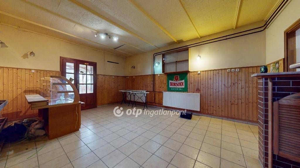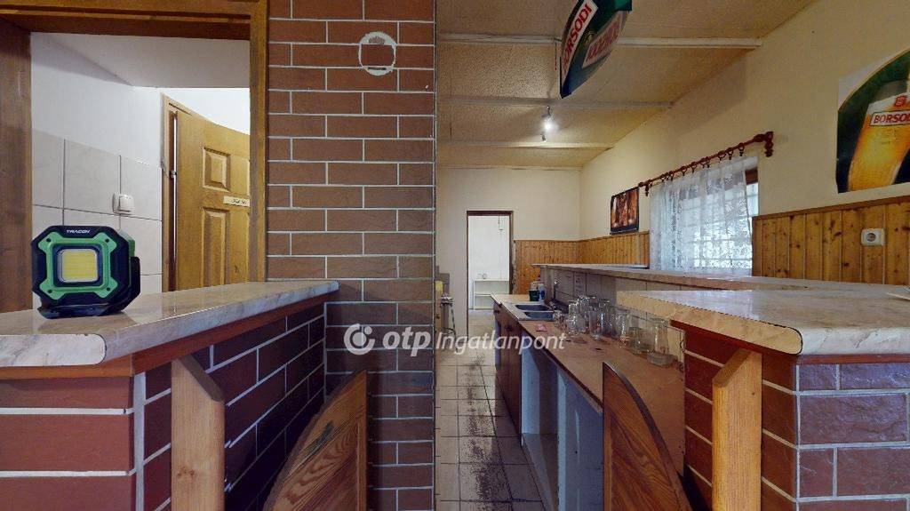 A belső tér tágas vendégtérrel rendelkezik, pulttal, kiszolgáló egységgel, csempézett padlóval és radiátoros fűtéssel. A helyiség igény szerint felújítható, modernizálható, így az új tulajdonos saját képére formálhatja.