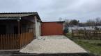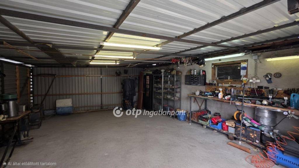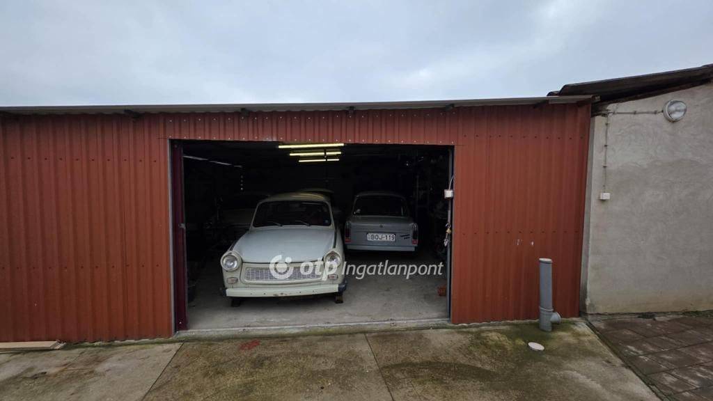 A melléképülethez 48m2 beton alappal rendelkező trapézlemezből épített könnyűszerkezetes garázs kapcsolódik , az udvari rész felől pedig 24m2 szintén beton alapon trapézlemezből kialakított tároló található.