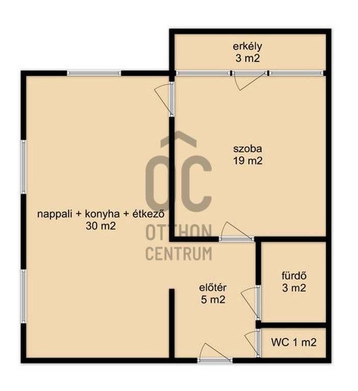 A lakás praktikus elrendezésű: előtér, tágas és világos nappali-konyha, külön nyíló hálószoba erkélykapcsolattal, zuhanyzós fürdőszoba, valamint külön WC található benne.