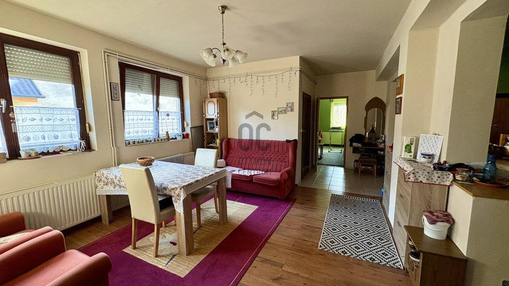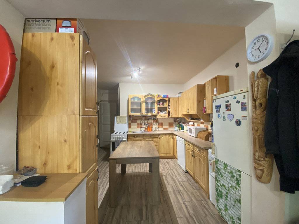 A tégla építésű ingatlan nettó 104 m² (bruttó 130 m²), elosztása: 3 szoba, tágas konyha–étkező–nappali, fürdő, kamra, terasz.
