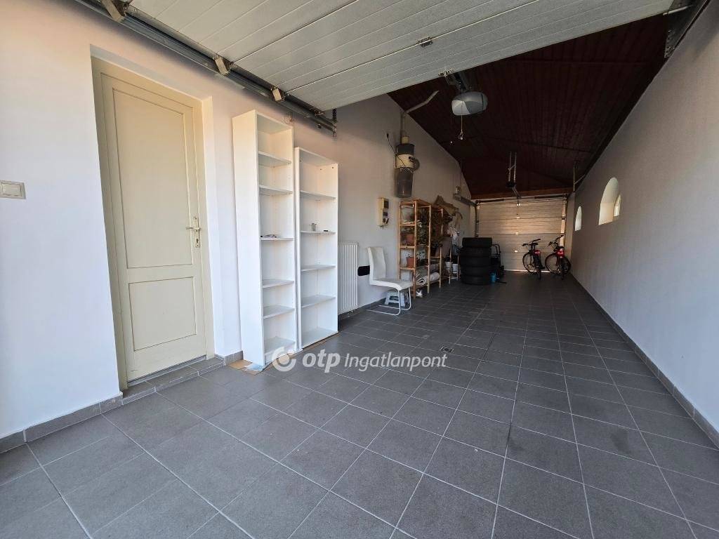 Az épület oldalában egy hosszú, kényelmes kialakítású garázs található, amely két nagyobb vagy akár három kisebb gépjármű parkolását is lehetővé teszi. Az ingatlan esztétikai értékét különleges módon emeli, hogy az emeleti galéria korlátja, az erkélyek díszkorlátai, az udvar kerítése, valamint a ház központi csillárja mind Ábrahám Lajos bajnai aranykoszorús díszkovács mester műhelyében készültek, egyedi kovácsoltvas elemekből, amelyek a ház karakterét és eleganciáját tovább erősítik.