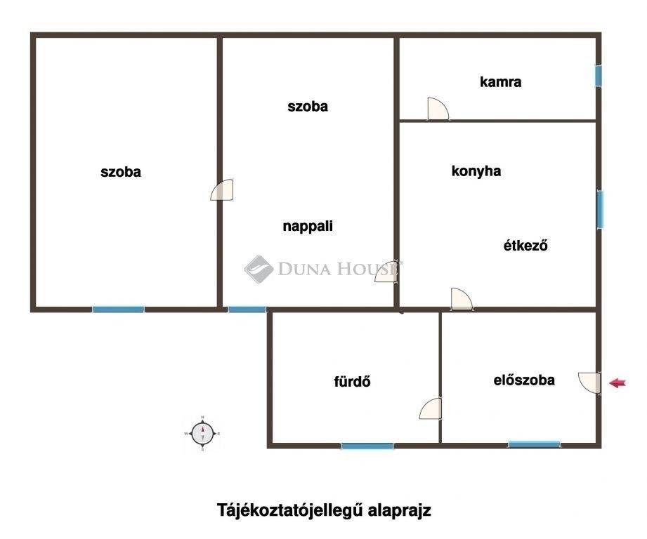 szoba, nappali- szoba, konyha - étkező, fürdőszoba - wc, előszoba, kamra, tároló