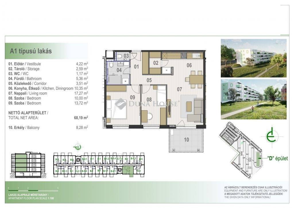 Főbb műszaki tartalom: padlófűtés, hűtő-fűtő splitklíma, 3 rétegű hőszigetelt nyílászárók, minőségi burkolatok, erkélyes kialakítás, alacsony fenntartási költség.