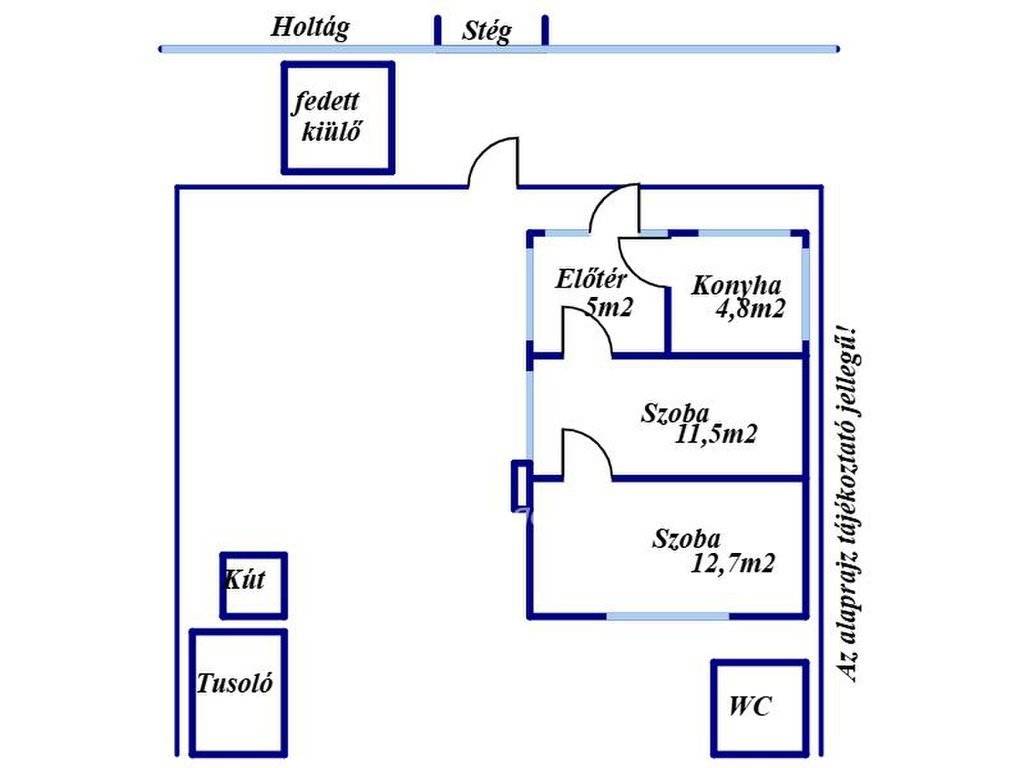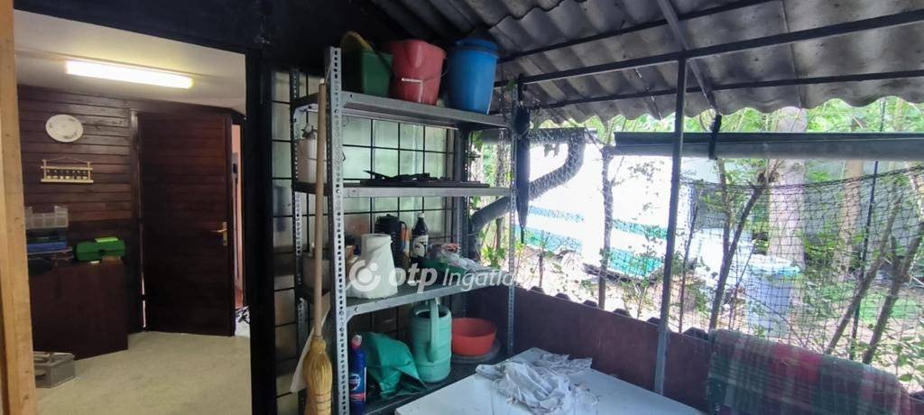 Az épület a 1980-as évek derekán épült,könnyű szerkezetes, JÓ állapotú, FOLYAMATOSAN karbantartott. Helyiségek: két szoba, konyha, előtér, tárolók, külön álló tusoló(átfolyós vízmelegítővel) és egy WC. Az ingatlanba villany bevezetve, fűtése kályhával megoldott. Vízellátás fúrt kútról, hidroforos rendszerrel biztosított. Az ingatlan teljesen BEKERÍTETT, művelési ága: zártkert. A kertben hatalmas fenyők,tuják és más nemes fák biztosítják a megfelelő klímát.