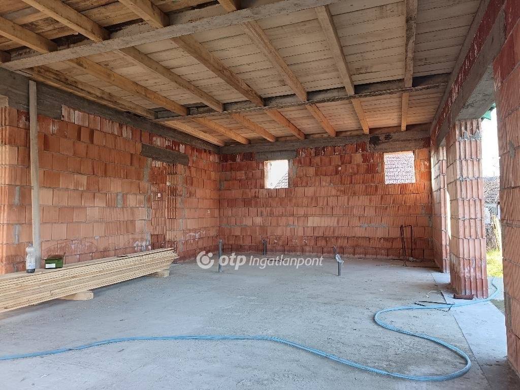 A ház modern antracit betoncserép tetőfedéssel már elkészült, az építkezés következő lépései pedig az új tulajdonos elképzelései szerint folytathatók.