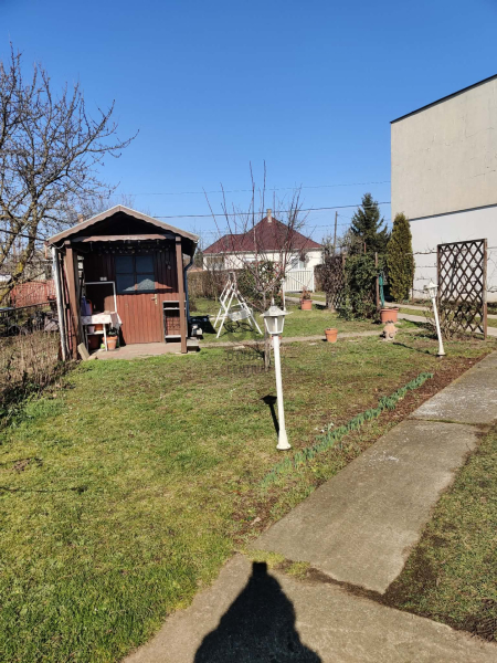 A lakáshoz tartozik a társasházi alapító okiratban rögzített telekrész és egy 20 nm alapterületü faház valamint egy garázs is melynek megvásárlása kötelező, ára: 9Mft .