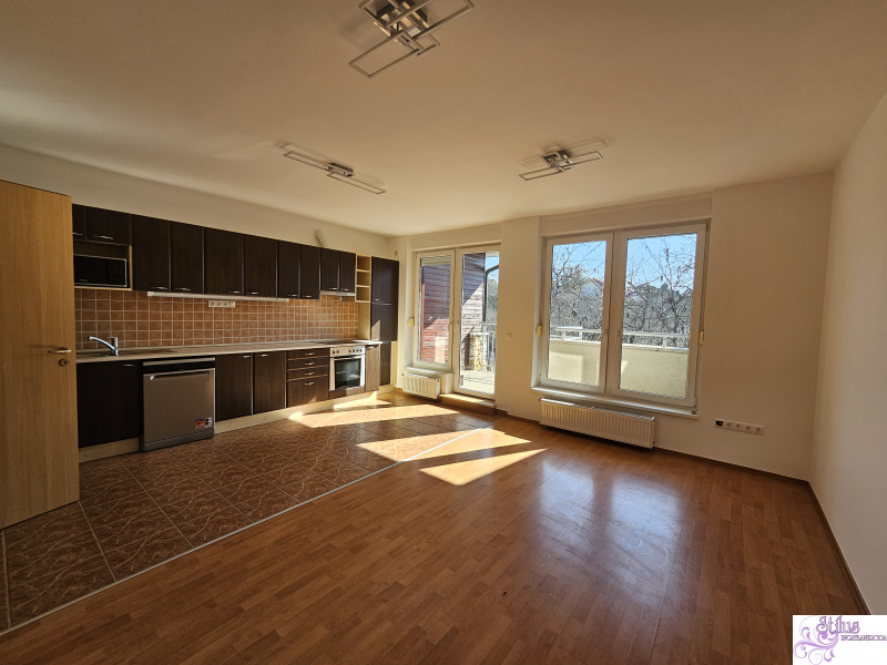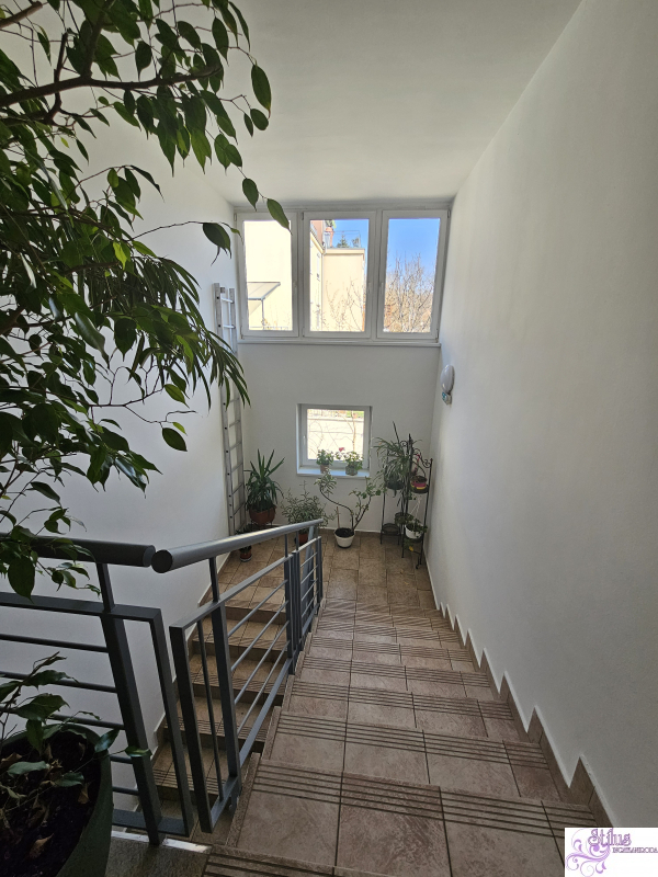 A lakás a zárószinten található, ezért csendes, világos, tágas, jó elrendezésű, beépített, gépesített konyhabútort tartalmaz.