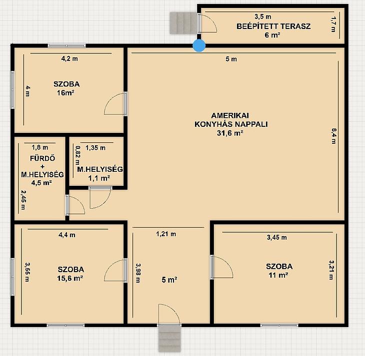 Amerikai konyhás nappali, 3 szoba, fürdő+ mellékhelyiség, külön mellékhelyiség