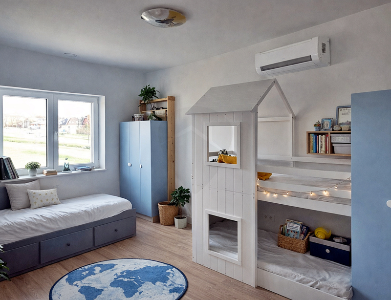 •Hűtő–fűtő fan-coil rendszer minden szobában és a nappaliban