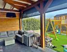 A 45 négyzetméteres terasz a nyári estéken tökéletes helyszín lehet baráti összejövetelekhez vagy egy kellemes könyv olvasásához.