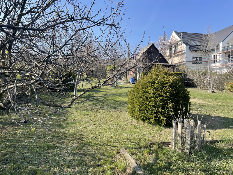 Az 1034 m²-es, 20 m utcafronti szélességű terület ideális méretű: elegendő helyet biztosít egy tágas családi ház és egy jól használható kert kialakítására. A kertben számos gyümölcsfa megtalálható.