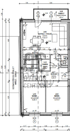 – amerikai konyhás nappali + 2 hálószoba