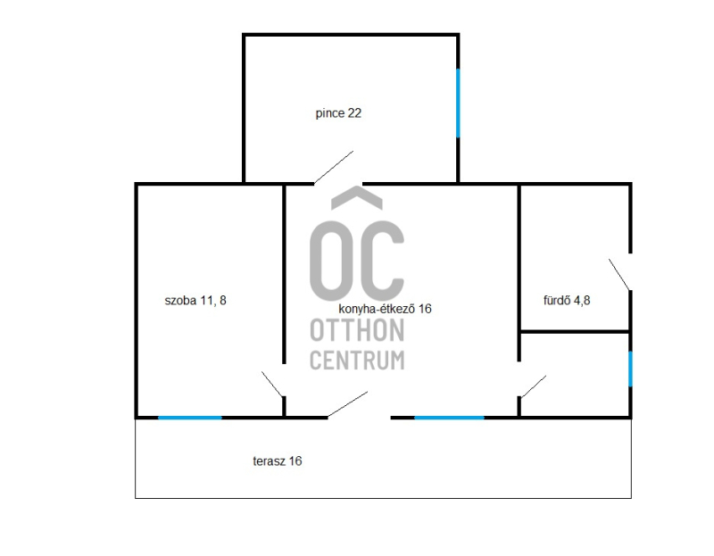 -lakófelület 55 nm, terasz terület 16nm