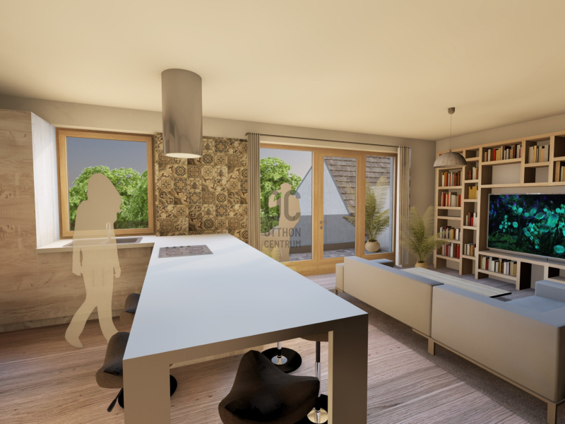 •Garzonlakás (eladva) – előtér, nappali–konyha–étkező, fürdő