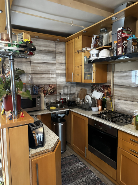 A földszinten a bejárattól jobbra egy étkezős konyha található, melyből egy beépített teraszra léphetünk. A terasz egyik fala hangulatos látszókő burkolatot kapott, ami igazán egyedi atmoszférát teremt.