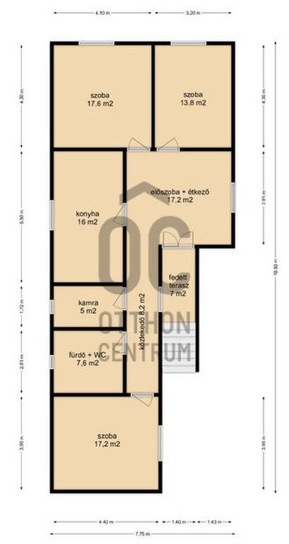 A ház barátságos, jó elrendezésű, három szobája és tágas terei meghitt életteret biztosítanak egy család számára, illetve ezáltal igény szerint nagyon könnyen alakítható.