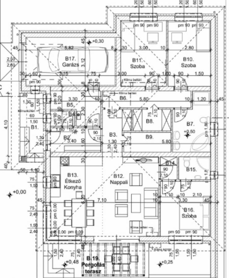 Elrendezés:Nappali + 3 hálószoba, 36 nm-es amerikai konyha, 18,17 nm-es garázs.