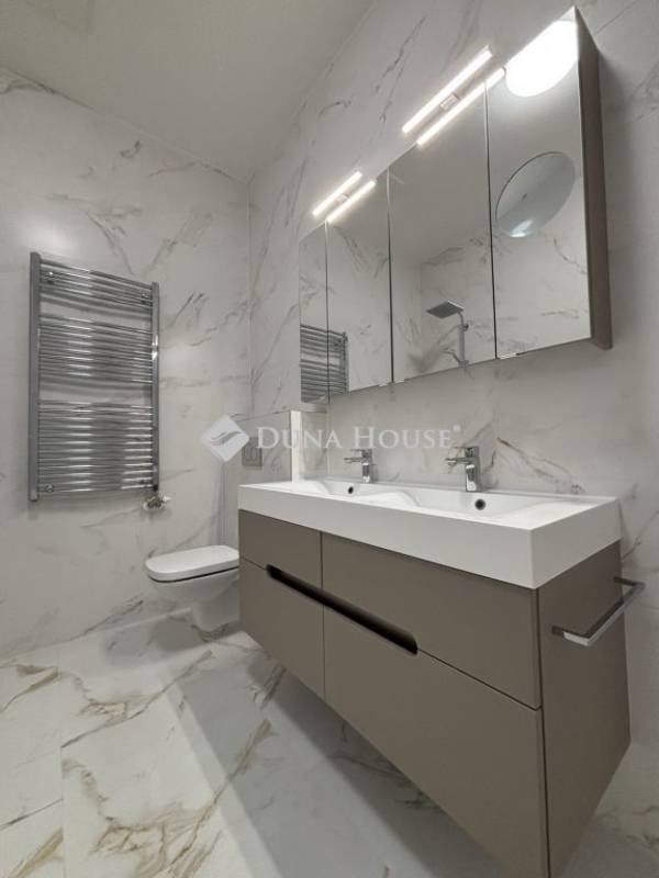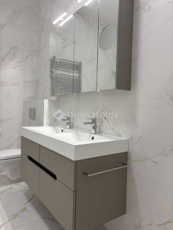 A belső terek kialakítása során minőségi burkolatok és prémium világítótestek kerültek beépítésre. Az egyedi tervezésű konyhabútor beépített konyhai gépekkel felszerelt, így a lakás a vásárlás pillanatától teljesen beköltözhető állapotban van, felesleges felújítási költségek nélkül.