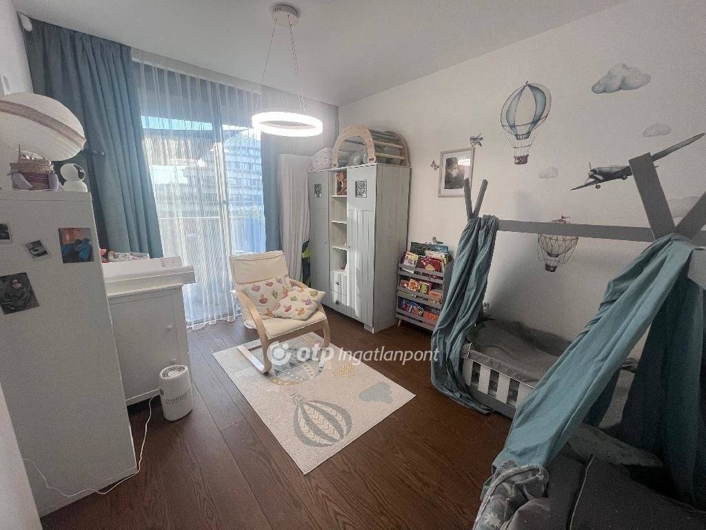 A lakás amerikai konyhás nappalival, három különnyíló szobával, fürdőszobával és külön WC-vel, valamint egy praktikus háztartási helyiséggel rendelkezik. A geotermikus fűtés és a minden helyiségben kiépített fan-coil rendszer modern, energiatakarékos és alacsony fenntartású megoldást biztosít, míg az egyedi árnyékolási rendszerek a kényelmet szolgálják a mindennapokban.