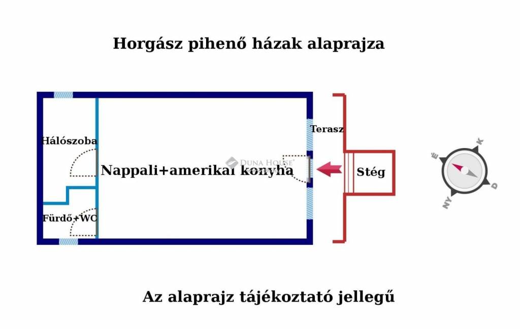 - Kettő darab, 39,3 négyzetméteres horgászpihenő (bérelhető, nyári szigetelésű faház). Tartozik hozzájuk egy-egy saját stég, terasz, nappali+amerikai konyha, hálószoba, fürdő+WC.