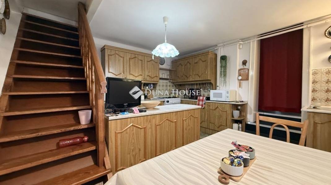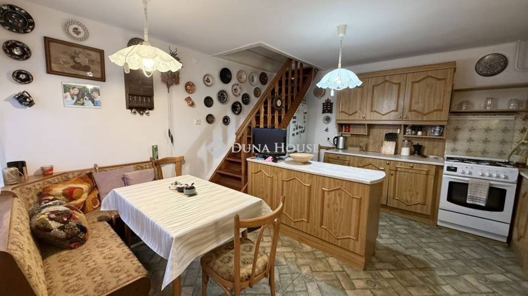 A konyha praktikus, szép világos. A fürdőszoba és a mellékhelyiség külön található. A tárolás kamara segíti.