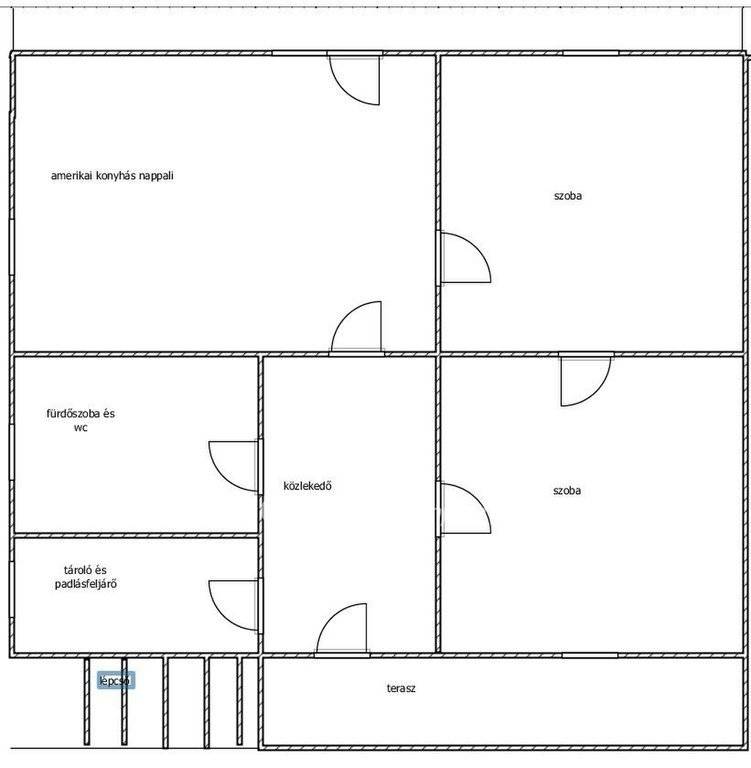 Az ingatlan praktikus elrendezéssel rendelkezik: a tágas folyosóról nyílnak a helyiségek, ami jó átláthatóságot és kényelmes közlekedést biztosít.