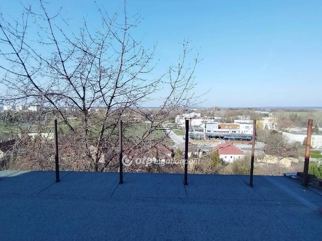 A 798 m2-es lejtős telek izgalmas kertépítészeti megoldásokra ad lehetőséget, és ez a domboldali elhelyezkedés garantálja a zavartalan kilátást a városra, és a Somlóra.