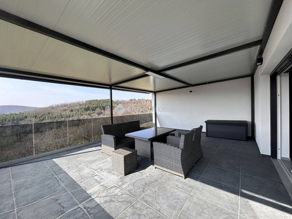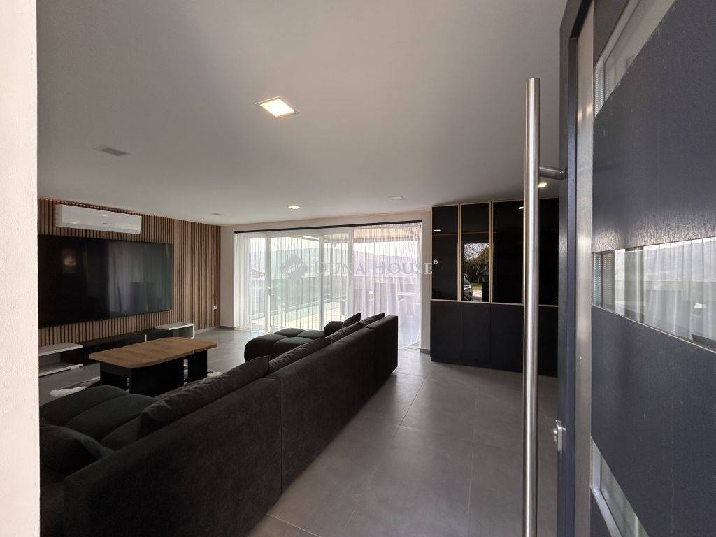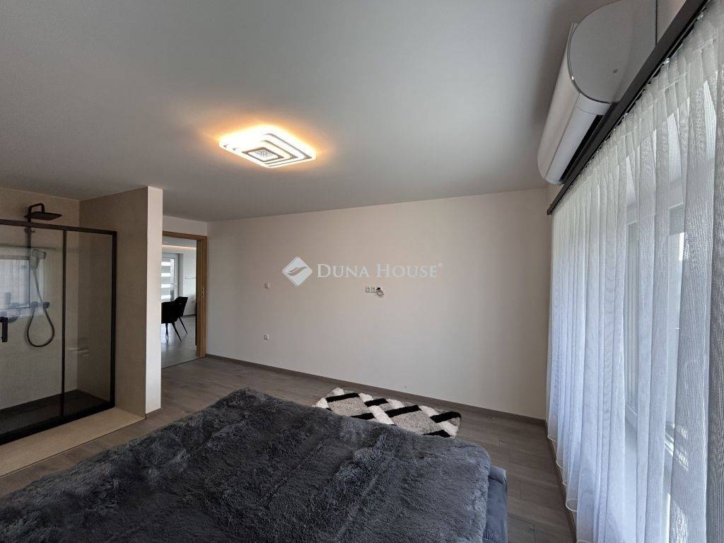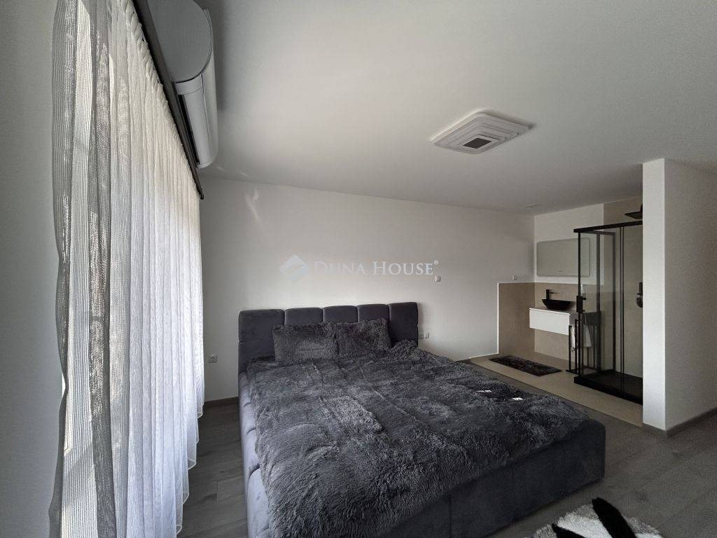Prémium minőség nettó 267 nm-en!Családi házat kínálok megvételre Zalaszentgrót egyik csendes zsákutcájában. Az elvehetetlen panorámával rendelkező kettő szintes családi ház nappali+5 háloszobás, különlegessége a tökéletesen kialakított teraszán kívül, hogy minden szobához fürdőszoba tartozik, ezzel biztosítva, hogy egy nagyobb, több tagú család is kényelmesen el tudjon különülni egymástól, akár egy reggeli készülődés során, vagy egy fárasztó nap után, amikor mindenki privát szférára vágyik. Közösségi tere tágas, konyhai berendezése magas minőségű bútort és gépezetet kapott, ez is ugyanúgy mint a ház többi része még érintetlen, vadonatúj, a ház első lakóit várja!Elrendezése praktikus, a földszinten nappali+konyha+étkező, kettő hálószoba, az emeleten pedig további három hálószoba van. A 3521 nm-es telket a házból tudjuk megközelíteni, a konyha mellett elhelyezkedő terasz ajtón át. Műszaki tartalma értéket képvisel, mai kornak abszolút megfelelő, hiszen ez egy téglából épült cserépfedésű tetővel ellátott szigetelt ház, három rétegű nyílászárókkal, elektromos redőnnyel. Villamos hálózata 3X25 A, ezzel működtetve a hét beltéri egységet magába foglaló klímás hűtő- és fűtő rendszert, éjszakai árammal kiegészítve a maximális energiatakarékosság jegyében. Dupla garázs kívülről elérhető, ennek szerkezete panelből készült. Az udvarról elérhető egy külön helyiség, ahol a ház teljes gépészeti rendszere van, ezen felül egy élhető méretű helyiség akár családi összejövetelek, akár bármilyen más jellegű tevékenységnek helyéül szolgálhat. Nagyon ritka olyan ingatlant találni manapság, ami azonnal költözhető, gyönyörű, igényesen kivitelezett állapotú, csendes helyen levő, ám Zalaszentgrót központja percek alatt elérhető autóval. Befektetői szempontból is érdemes megvizsgálni a ház adottságait, hiszen apartmanként is minden igényt kielégítő, könnyen megtérülő hasznot generálhat tulajdonosának. Jogtiszta ingatlan, a vételár megfizetése után szinte azonnal birtokba vehető!Megtekintéshez az alábbi elérhetőségek valamelyikén tud velem időpontot egyeztetni. Várom megtisztelő hívását, akár hétvégén is!