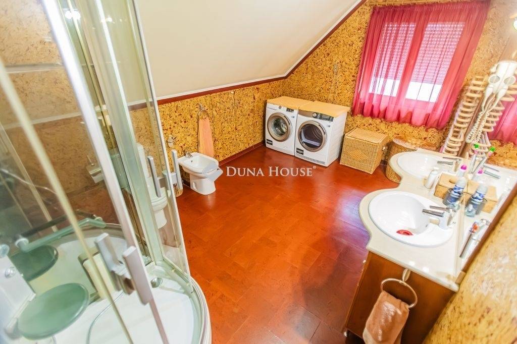 Jászberény Kertvárosában eladó sorba került egy saroktelken elhelyezkedő, 2 generációs ingatlan (főépület 160 m2 - alsóépület - 112 m2), ami vállalkozás célra is hasznosítható!Az alsóépületre engedélyezett terv is készült, ami lakóház átalakítására szolgál.A saroktelken való elhelyezkedés lehetővé teszi, hogy a 2 ingatlan akár különválasztó, amelyhez külön utcafronti bejárás tartozhat.Lakóépület: - 1995-ben épült tetőteres, 3 szobás családi ház akár 4 szobássá is visszaalakítható + nappalis - 2 fürdőszobás kialakítással - Külső homlokzat 6 cm hungarocell szigeteléssel ellátott - a lábazat 5 cm szigetelést kapott - Szo-fa kültéri fa 2 rétegű szigetelt nyílászárók alumínium redőnnyel kiegészítve - Fűtés Westen kombi gázkazán (fűtést és melegvizet is ad), a helyiségeket pedig szabályozható radiátorok fűtik, az 1500 literes puffertartály-ból megy a melegvíz, Továbbá VIADRUS vegyes tüzelésű kazán is lett beépítve alternatív fűtésnek (fűtésrendszer korszerűsítés 2017-ben történt meg) - Földszinten és az emeleten egyaránt egy-egy inverteres klíma lett felszerelve a nagyobb komfortérzet és a praktikusság végett - Villamosáram hálózat 3X25A, TELJESEN kielégíti a ház illetve a lakók igényeit. A konyha és étkező rész tágas és világos, de a tulajdonosok egy teljesen üvegezett télikerttel bővítették a teret, növelve az étkezőt, de el is választható igény szerint.A konyhában egy hangulatos és jól átgondolt, okosan rendszerezhető, egyedileg készített és gépesített konyhabútor került beépítésre. Bőséges konyhapult van, ahol gyakorlott háziasszonyoknak is megfelelő tér áll rendelkezésre.A földszinti helyiségek többsége vynil padlóval, míg a szoba és nappali laminált padlóval burkoltak. A fürdőben parafával burkolt felület lett kialakítva. A LENTI fürdőszobában kádas hidromasszázs zuhanykabin van, a fenti fürdőben pedig hidromasszázs gőzkabin lett beépítve.A fürdő és mosdó külön helyiségben lett kialakítva a földszinten, míg az emeleten egy térben lett kialakítva.Az emeletre vezető lépcső tölgyfalépcső, egyedi hangulatot és kényelmes közlekedést nyújt az ott lakók számára.Az emeleten eredetileg 3 különálló hálószoba lett kialakítva terv szerint, de jelenleg át lett alakítva nagyobb méretű 2 szobás verzióra a nagyobb élettér miatt. Az utcai szobához egy nagy erkély is tartozik.Alsó épület:A szilárd falazatú épület alapterülete 112 m2, rendeltetése üzlethelyiség és garázs. - a dupla garázs mérete 32,4 m2, elektromos távirányítású kapuval rendelkezik, teteje szigetelt, - mellette egy üzlethelyiségnek kialakított helyiség található radiátor fűtéssel, ipari pvc padlóval, - egy közel 40 m2 garzon vagy irodaként is funkcionálható akár, rendelkezik zuhanyzós fürdő+wc, kis nappali, konyhafal és az ehhez szükséges közmű felállások, utca frontról és udvar felől is megközelíthető. - az épület alatt egy igényes kis 15 m2 pince is lett építve: zöldségei mellett itt bort, pálinkát is tárolhat illetve egy kis baráti buli is kivitelezhető. - a kültéri nyílászárók itt is fa szerkezetűek és az ablakok 2 rétegű szigetelt fa ablakok - Villamosáram hálózat: 3X25A Rengeteg lehetőség van ebben az épületben: - akár gyermekei otthona is lehet leválasztva, építési terv szerint 3 szobás háznak alakítható - Jelenlegi garzon kiadható lakó illetve vállalkozó részére is - nagyobb üzlethelyiség kifejezetten vállalkozásnak ajánlott, szinte bármilyen lehetőség adott. - DUPLA GARÁZS lehet raktár is.Az udvar térkövezett a 2 épület között részig, illetve egy fedett kocsibeálló is épült vagy egy kiülős kerti terasznak is használható! A fő épület előtti rész térkövezett, míg az üzlet előtti parkoló aszfaltozott.A térburkolattal ellátott kert egy része sima füvesített illetve műfűvel burkolt.Hidroforos fúrott kútról lehet locsolni, a gépészet a pincében lett elhelyezve.Az ott lakók biztonságáról riasztórendszer gondoskodik, illetve kamera is szerelhető fel.Ez egy komplex ingatlan nagycsaládosoknak és vállalkozó szelleműeknek.Járjuk körbe együtt az ingatlant és lássa meg benne a lehetőséget Ön is!Szeretné megtekinteni az ingatlant?Kérem telefonáljon és megmutatom Önnek!Irodánkban független és teljesen ingyenes hiteltanácsadással állunk ügyfeleink szolgálatára, amelynek keretében CSOK, Babaváró támogatás és egyéb, kedvező kondícióval rendelkező hitelkonstrukciókkal számolhatnak ügyfeleink!