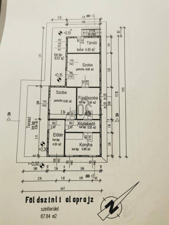 - alsó szinten két szoba, ahol az egyik szoba kintről külön is megközelíthető, konyha, fördőszoba+wc (egyben), előszoba és egy előtér, kint fedett terasz és egy tároló
