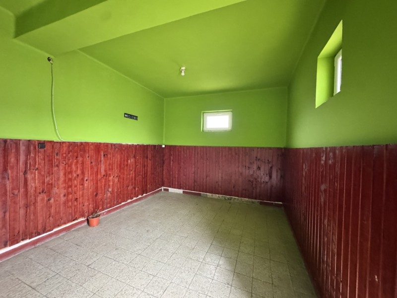 A tágas belső tér több helyiségből áll, rendelkezik folyosóval, több mosdóval, hűtőkamrával, nagy méretű raktárral, valamint több különálló teremmel, így számos funkcióra alkalmas. A tetőtér beépíthető, ami további bővítési lehetőséget kínál.