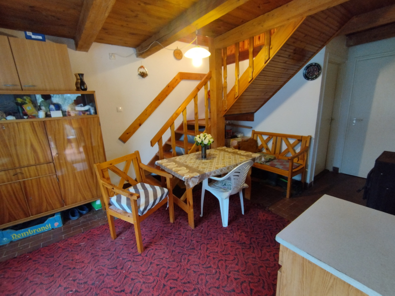Eladó egy B30-as TÉGLÁBÓL épült 45m2-es hétvégi ház Hatvan külterületén. Az épületbe egy teraszon keresztül jutunk, ahol a földszinten egy nappali, főzőfülke, fürdőszoba és egy kamra található pincelejáróval. Az emeletre egy masszív falépcsőn keresztül jutunk, ahol 2 db hálószoba található. A téli kellemes hőérzetről és hangulatról egy kályha gondoskodik. A tágas 13 m2-es terasz tökéletes helyszín a reggeli kávézáshoz vagy a pihenéshez, ahol élvezheted a FRISS LEVEGŐT és a CSENDES környék nyugalmát. Az ingatlan szerkezetileg kifogástalan, belső állapota átlagos állapotú, ezáltal SAJÁT ÍZLÉSED szerint alakíthatod.