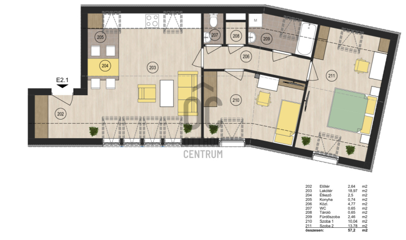 Tetőtér : 2 db lakás ( egyik lakás : 57,2 m2 , a másik lakás: 52,18 m2 )