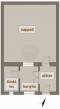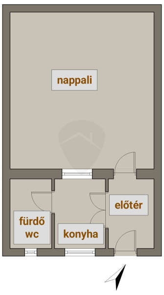 A házban egy tágas szoba található, amely kiválóan alkalmas nappali és hálószoba funkciók betöltésére.