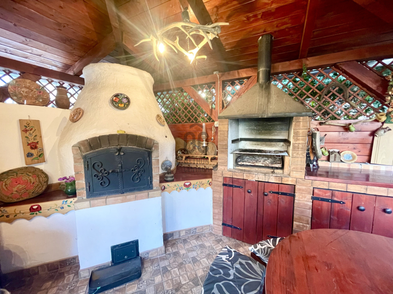 A kertben 16 m2-es fedett grillterasz is az itt lakók kényelmét szolgálja, amely magában foglal egy grillezőt, búbos kemencét, és füstölő helyiséget is.
