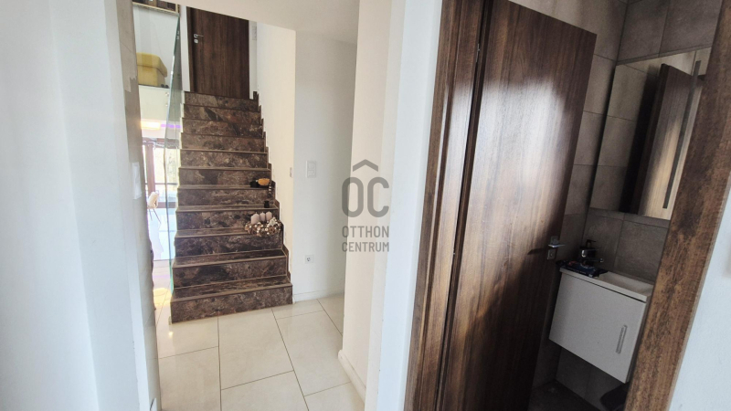 Az alsó szinten garázs, mosókonyha, tároló és egy jelenleg konditeremként használt helyiség kapott helyet, így a ház a mindennapi praktikum szempontjából is jól átgondolt.