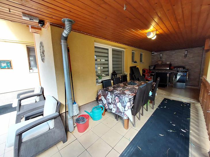 Tartozik a házhoz egy tágas terasz, illetve nyári konyha, a kertben öntözőberendezés van kialakítva.
