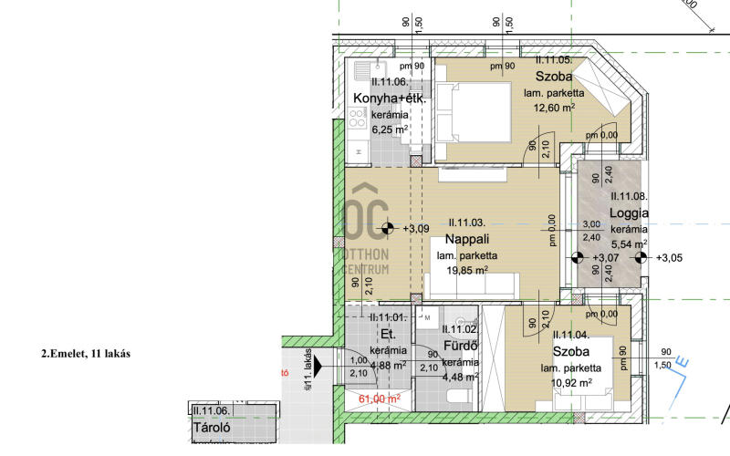 -Szobák: laminált parketta 7 500.-Ft. + áfa / nm