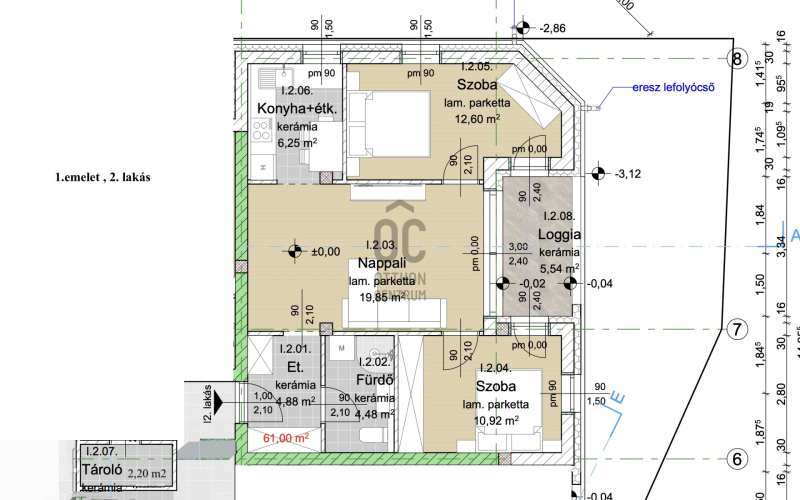 -Szobák: laminált parketta 7 500.-Ft. + áfa / nm