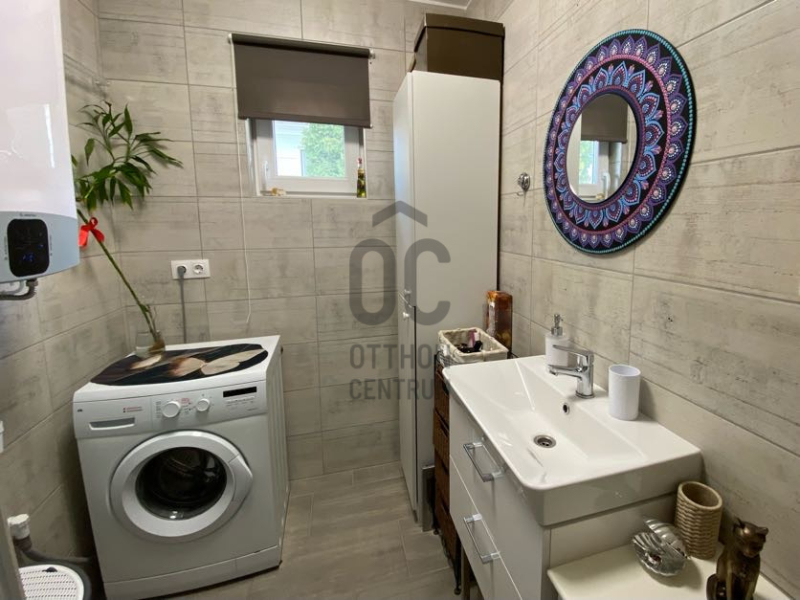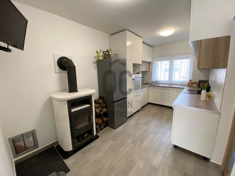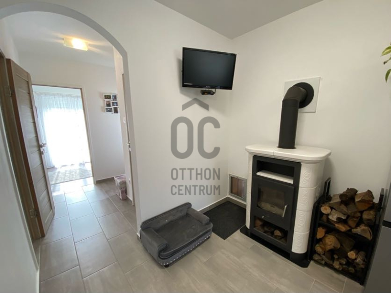 Ezen kívül beépítésre került egy nagyon szép fatüzelésű kandalló, amely hangulatos kiegészítő fűtési lehetőséget biztosít.