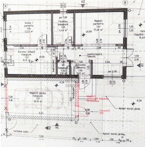 •egy 20 m²-es, a házhoz épített aknás garázs