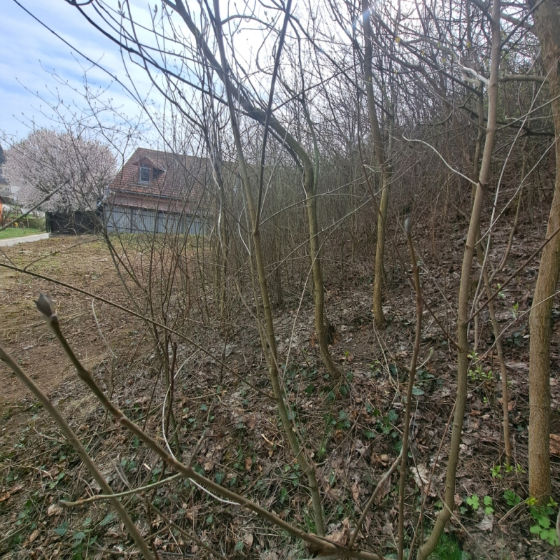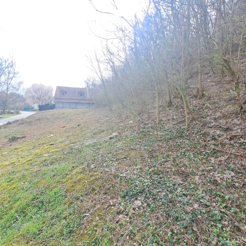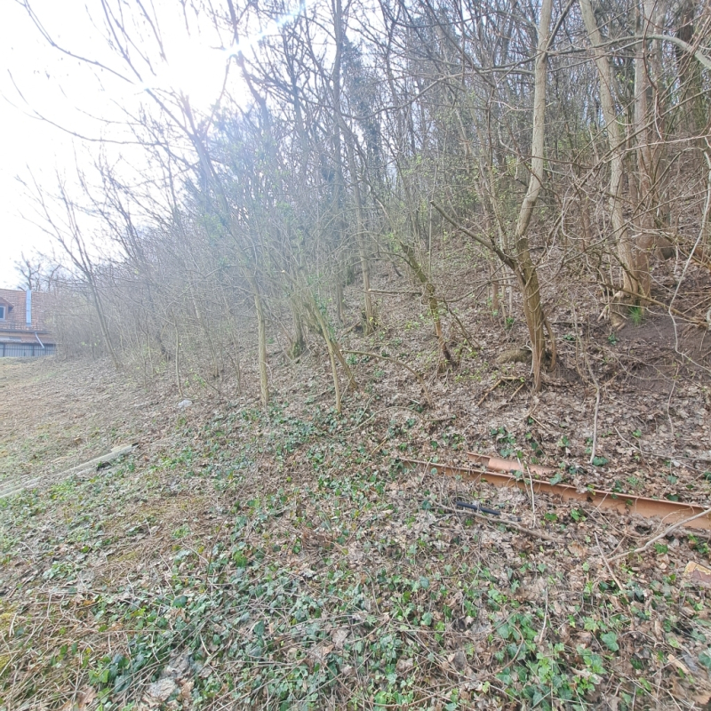 A telek állapota: a terület felső része erőteljesen növényzettel benőtt,