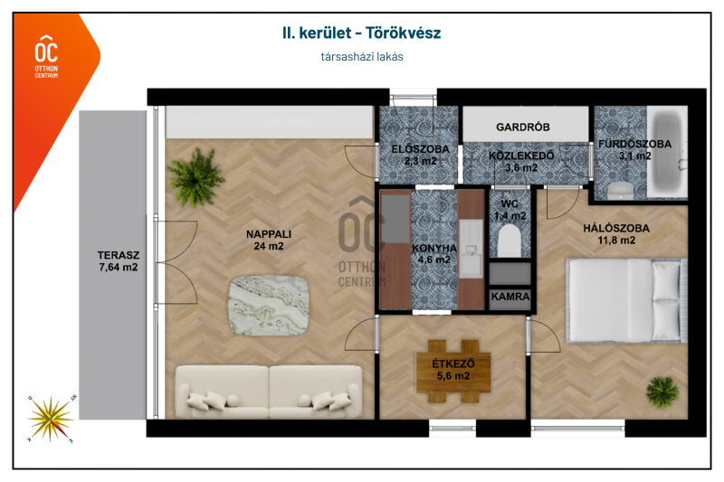 * 56,3 m² lakótér