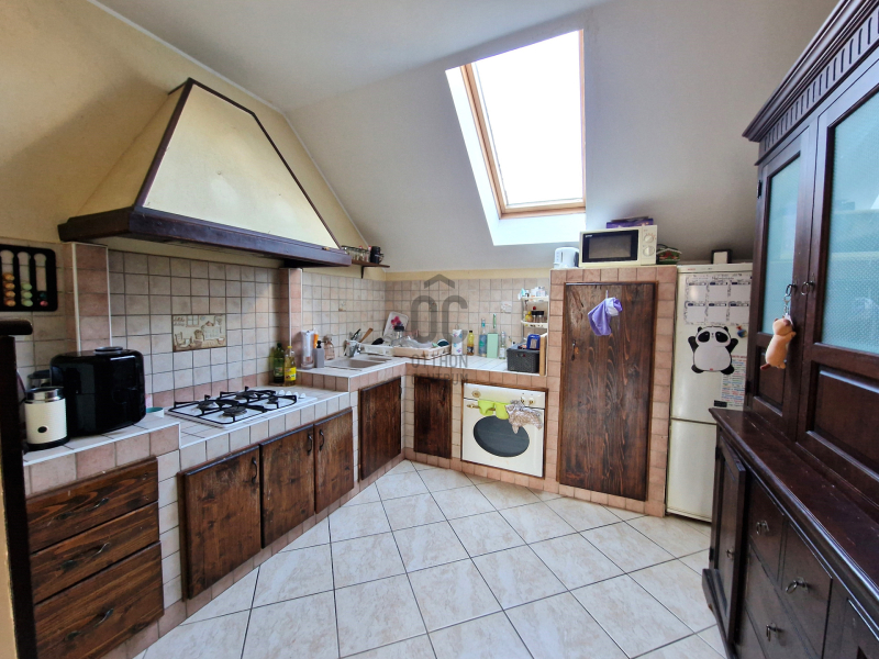 Emelet helyiségei: Nappali, konyha, étkező, 3 hálószoba, fürdő szoba-wc-vel egy helyiségben, 5 nm-es loggia. Fiatalos, modernizált belső terek.
