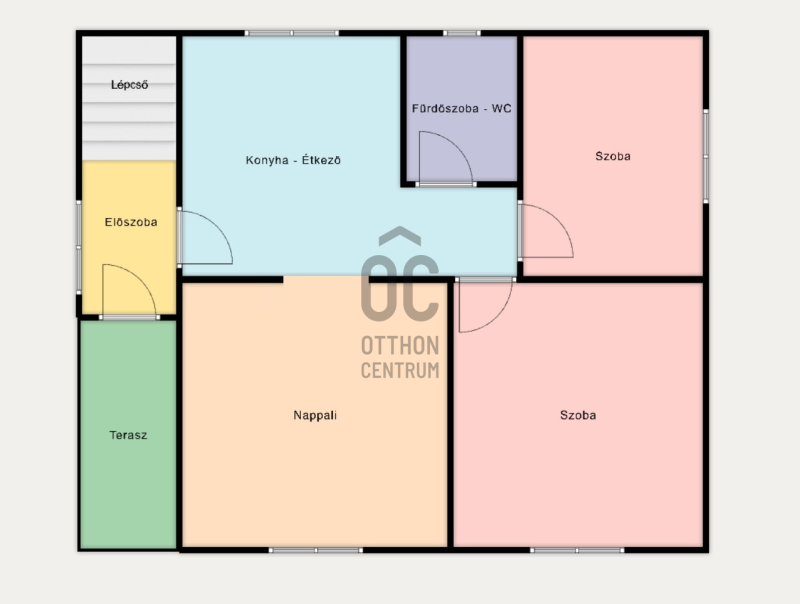 Földszint helyiségei: Étkező-konyha, nappali és 2 hálószoba, fürdőszoba-Wc egy helyiségben és hangulatos terasz Ideális az idősebb generációnak.