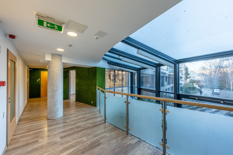 Az iroda a belső, csendes udvarra néz, ugyanakkor utcafronti bejárattal is rendelkezik, így a nyugodt munkakörnyezet és a könnyű megközelíthetőség egyszerre biztosított.